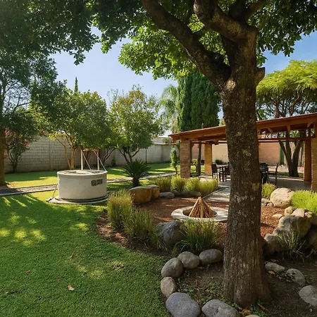 Localizada a uma distância aproximada de 25 minutos a pé de Antigua Hacienda San Agustin, a Cómoda cabaña con palapa y fogata a minutos de Villa Iluminada Atlixco dispõe de terraço com vistas para o jardim.